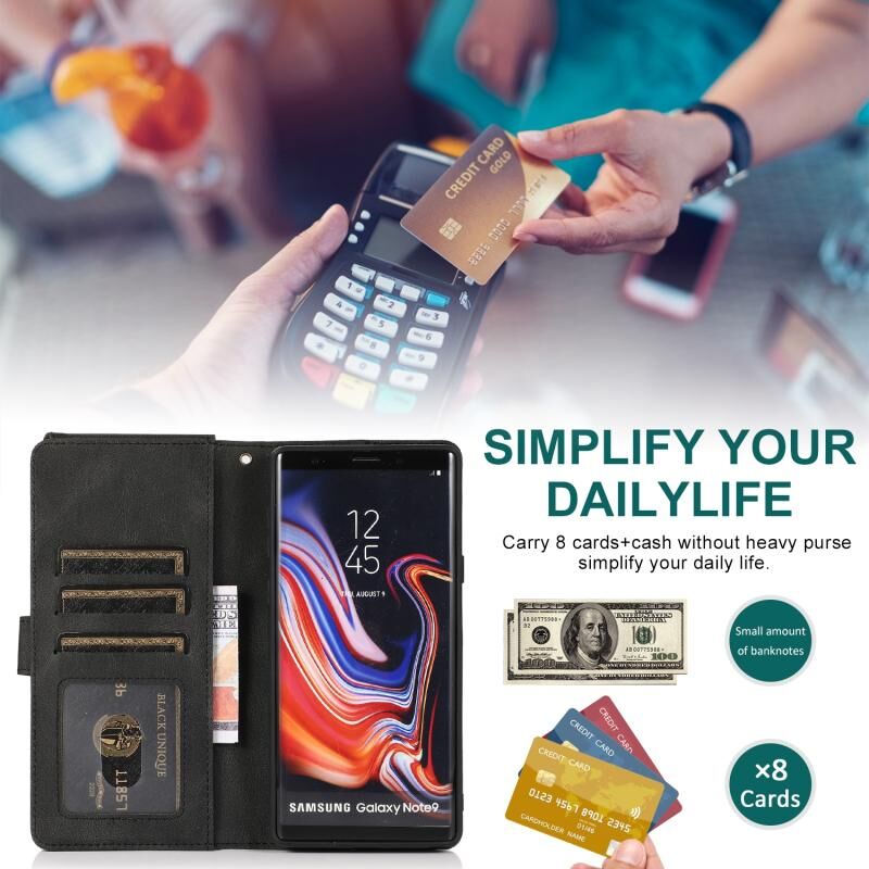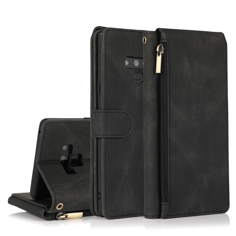 Για Samsung Galaxy Note9 Skin-feel Crazy Horse υφή φερμουάρ τσάντα πορτοφόλι οριζόντια Flip δερμάτινη θήκη με κάτοχο & υποδοχές για κάρτες & πορτοφόλι & κορδόνι (μαύρο)