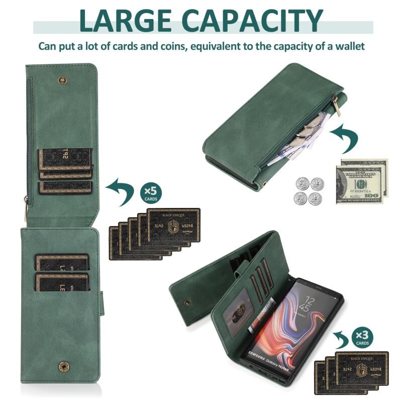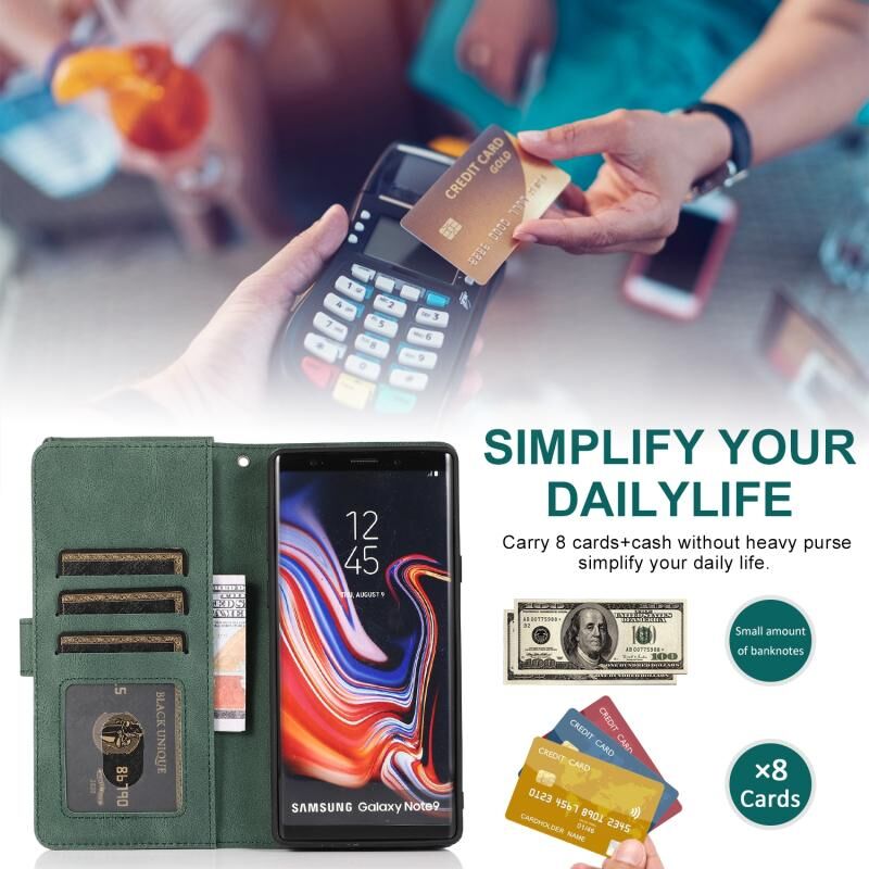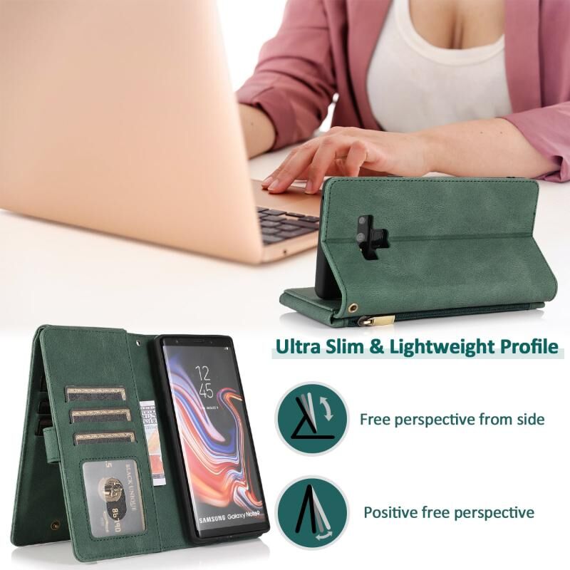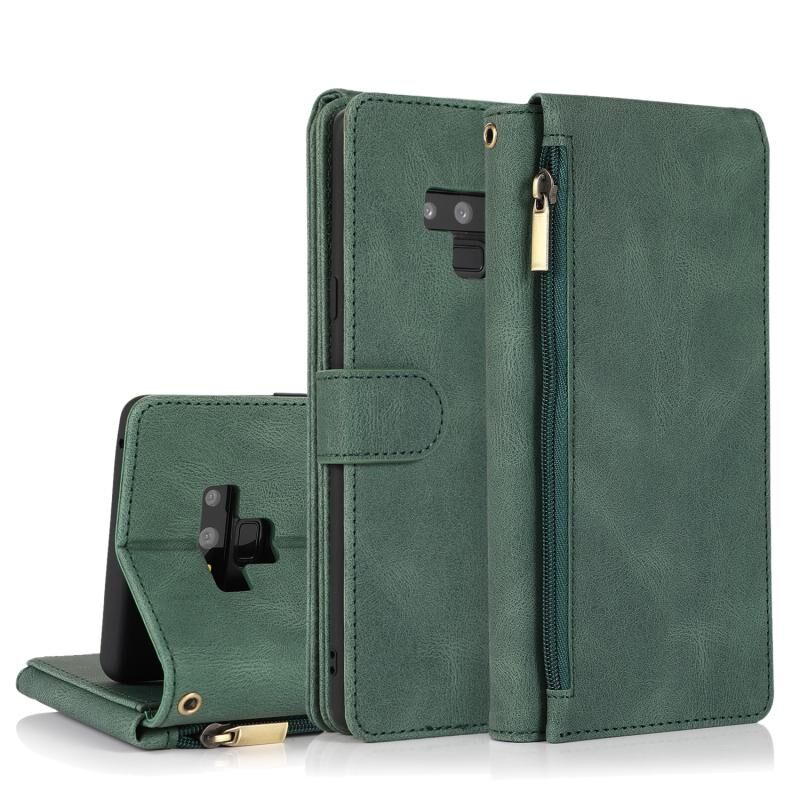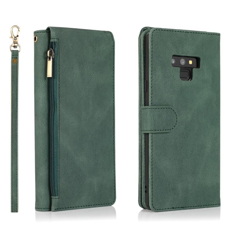 Για Samsung Galaxy Note9 Skin-feel Crazy Horse υφή φερμουάρ πορτοφόλι τσάντα οριζόντια Flip δερμάτινη θήκη με κάτοχο & υποδοχές για κάρτες & πορτοφόλι & Lanyard (Σκούρο πράσινο)