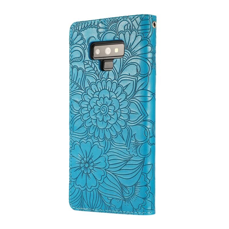 Για Samsung Galaxy Note9 δέρμα αίσθηση ανάγλυφο ηλιοτρόπιο οριζόντια Flip δερμάτινη θήκη με υποδοχές για κάρτες & θήκες & πορτοφόλι & κορδόνι (μπλε)