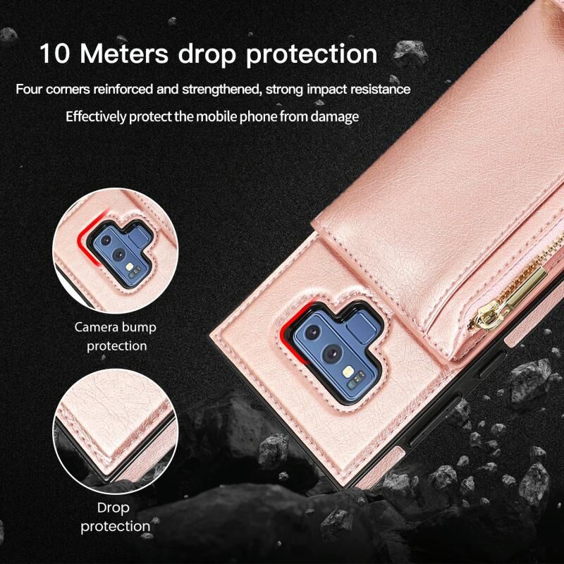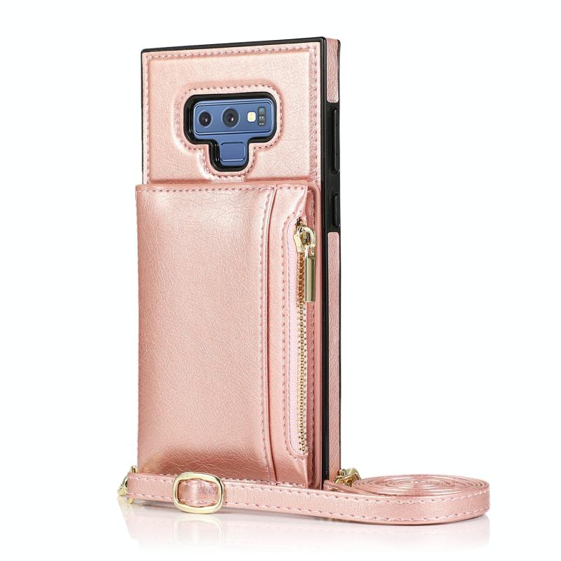 Θήκη για Samsung Galaxy Note9, Τετράγωνη Τσάντα Πορτοφολιού με Φερμουάρ, από TPU+PU, με Λαβή, Θήκες για Κάρτες & Πορτοφόλι & Λουρί Χιαστί (Χρυσαφί Ρόδινο)