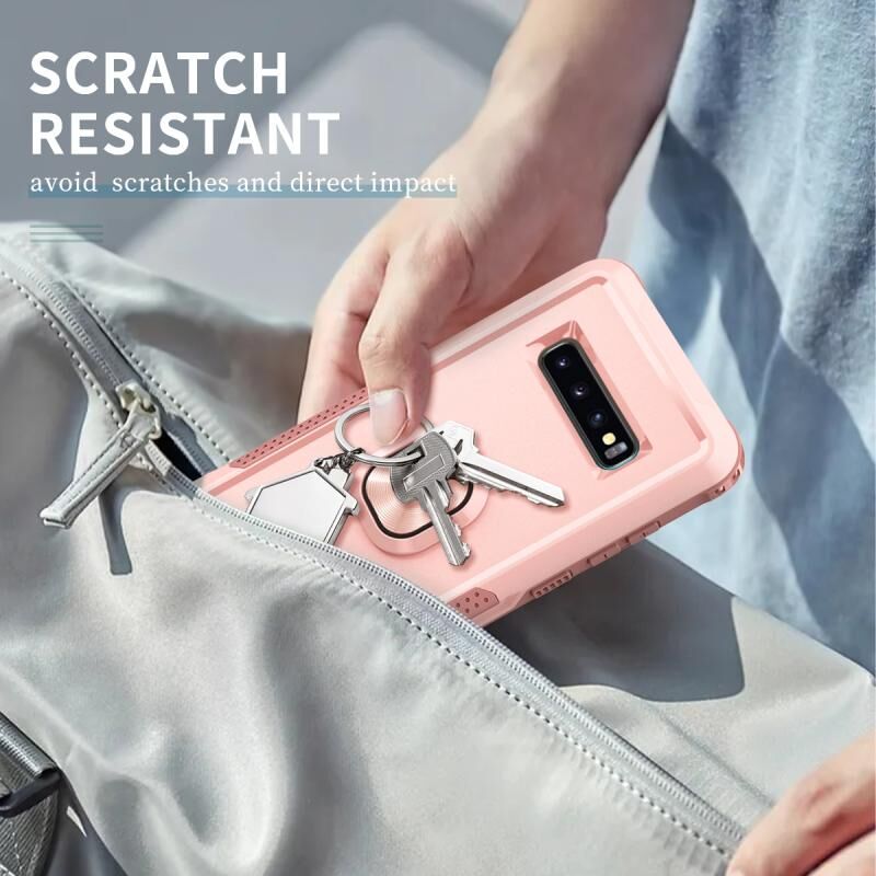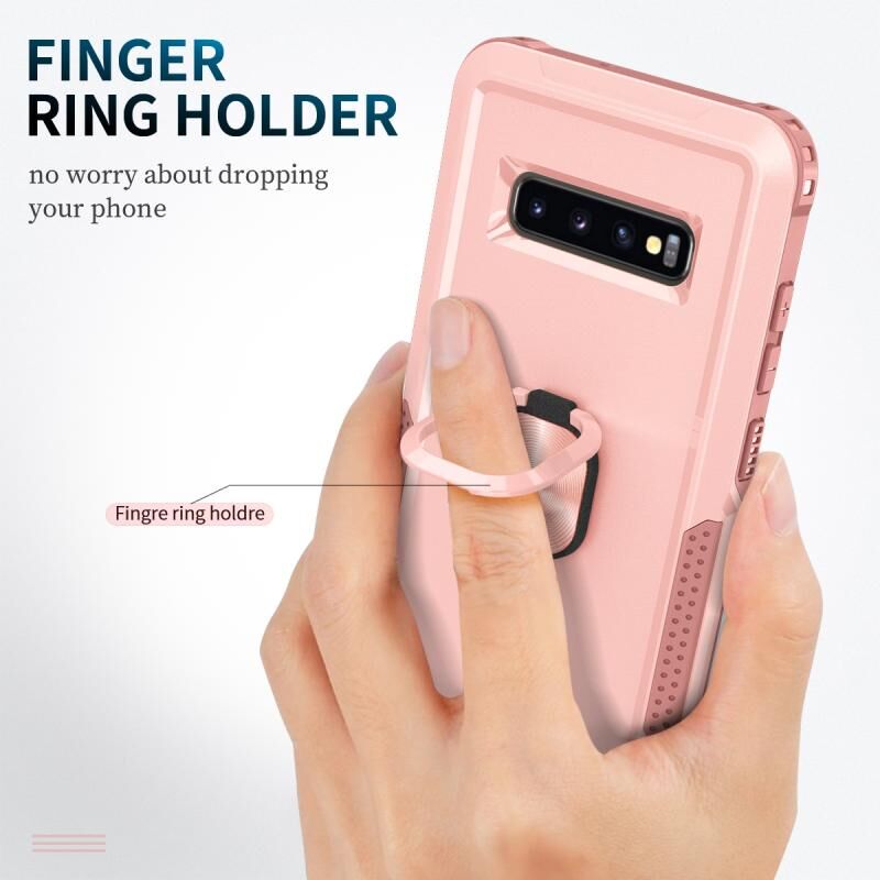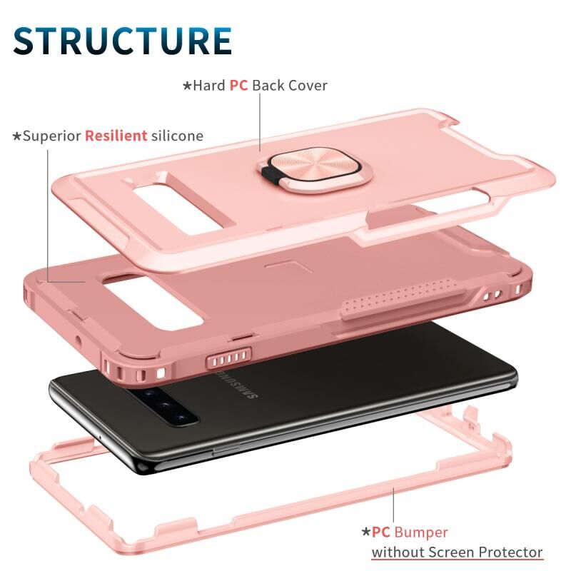 Για Samsung Galaxy S10 3 σε 1 PC + TPU θήκη τηλεφώνου με θήκη δαχτυλιδιού (ροζ)