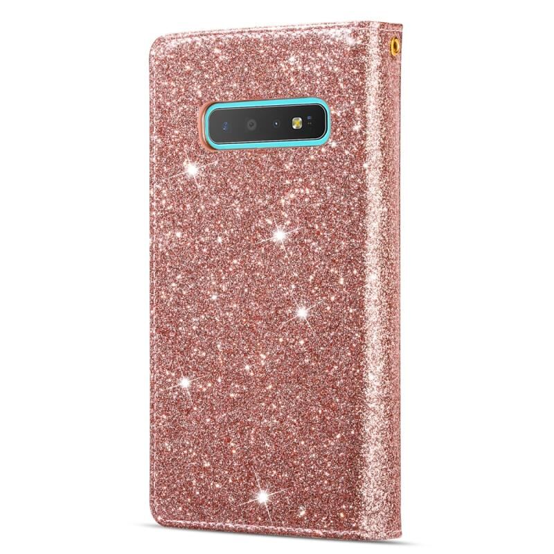 Θήκη δέρματος οριζόντιας αναδίπλωσης με φερμουάρ, με λαμπερό σχέδιο χάραξης λέιζερ αστρικού ουρανού, πολλαπλές θήκες καρτών για Samsung Galaxy S10 5G, με βάση, πορτοφόλι και λουρί (Μωβ)