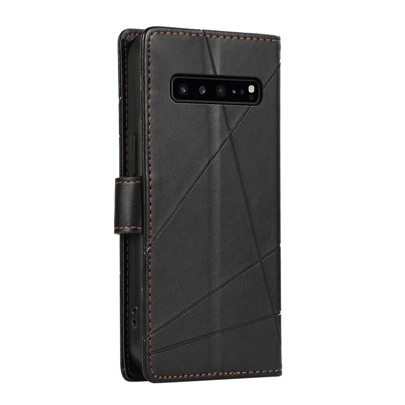 Θήκη τηλεφώνου Samsung Galaxy S10 5G από γνήσιο δέρμα PU με ανάγλυφη υφή και λεπτή γραμμή (Μπλε)