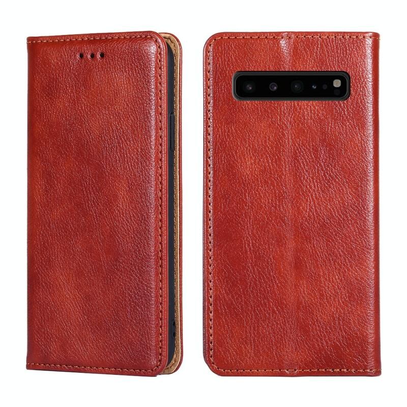 Για Samsung Galaxy S10 5G PU + TPU γυαλιστερό λάδι στερεό χρώμα μαγνητική οριζόντια Flip δερμάτινη θήκη με υποδοχή & υποδοχή για κάρτες & πορτοφόλι (καφέ)