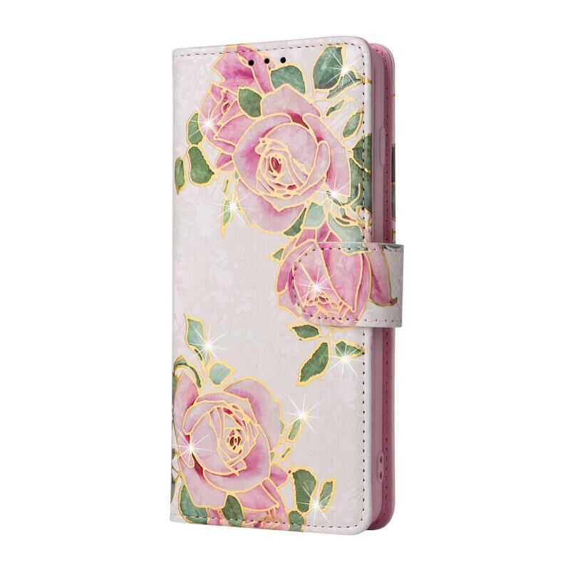 Θήκη δερμάτινη με σχέδιο bronzing painting και RFID για Samsung Galaxy S10 (Ροζ Λουλούδι)