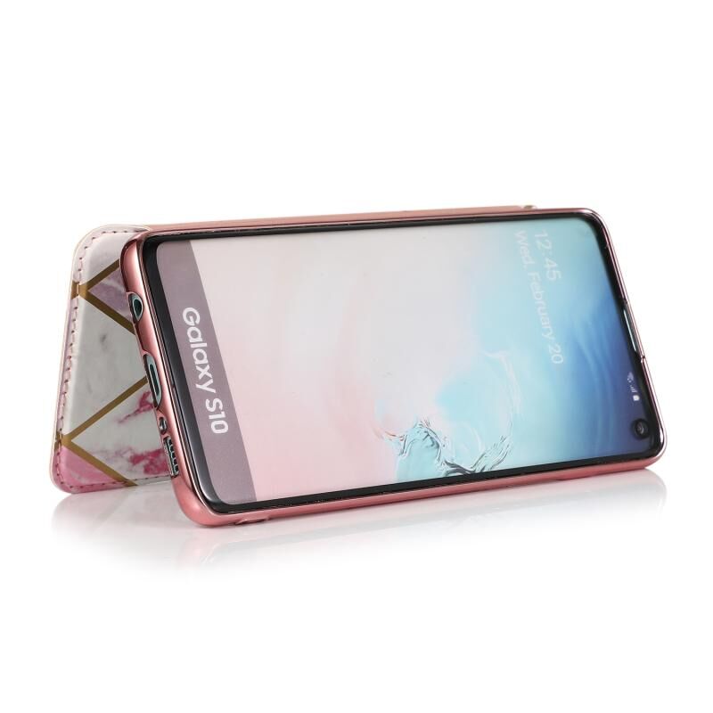 Θήκη δέρματος οριζόντιας αναδίπλωσης PU + TPU με επιμετάλλωση μπρούτζου για Samsung Galaxy S10 με βάση & υποδοχή κάρτας (Μαύρο)
