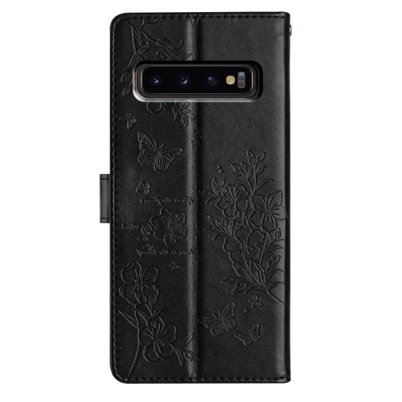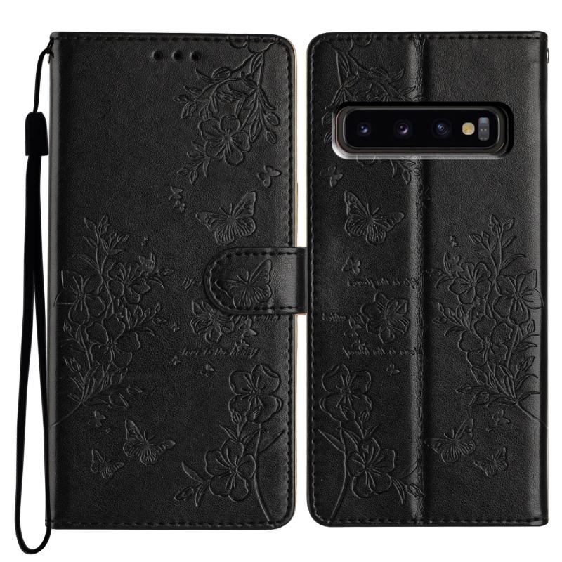 For Samsung Galaxy S10 Butterflies and Flowers Leather Phone Case(Black)
