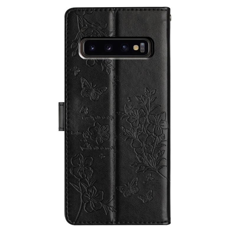 Θήκη τηλεφώνου Samsung Galaxy S10+ Πεταλούδες και Λουλούδια από Δέρμα (Μαύρο)