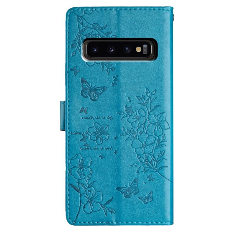 For Samsung Galaxy S10 Butterflies and Flowers Leather Phone Case(Blue)