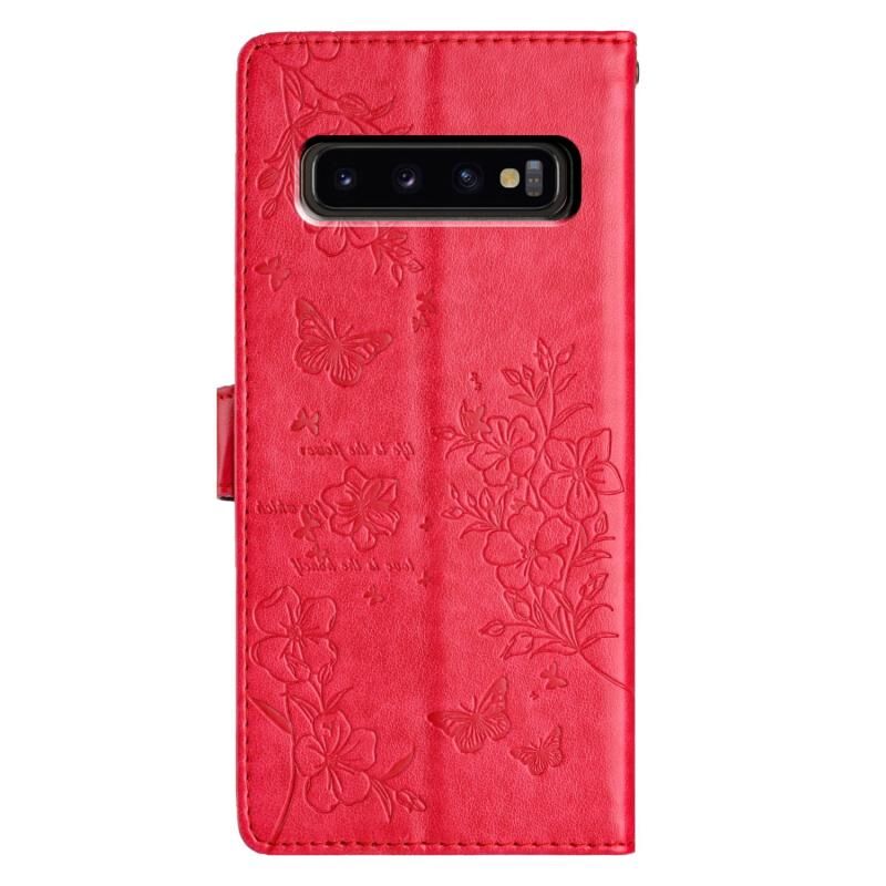 Θήκη τηλεφώνου Samsung Galaxy S10 Butterflies and Flowers από δέρμα (Χρυσό)