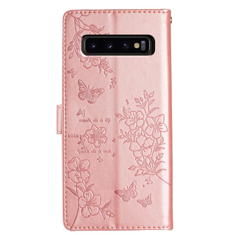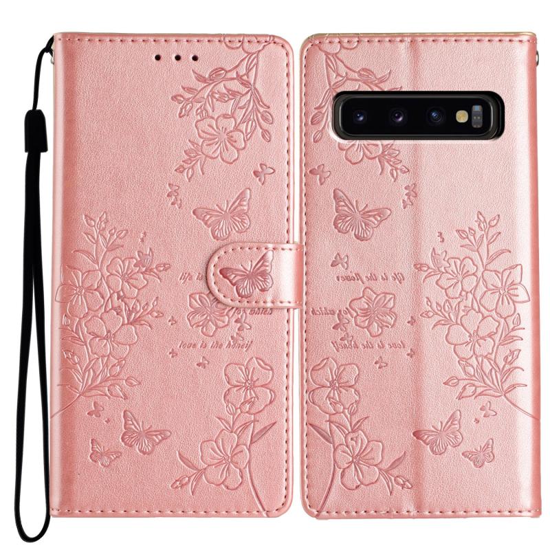 For Samsung Galaxy S10+ Butterflies and Flowers Leather Phone Case(Rose Gold)