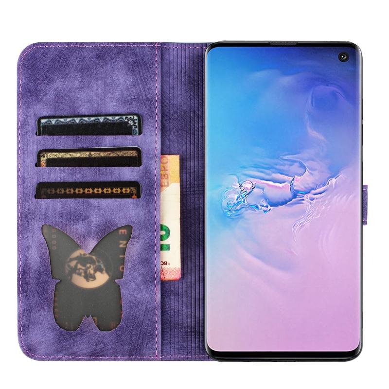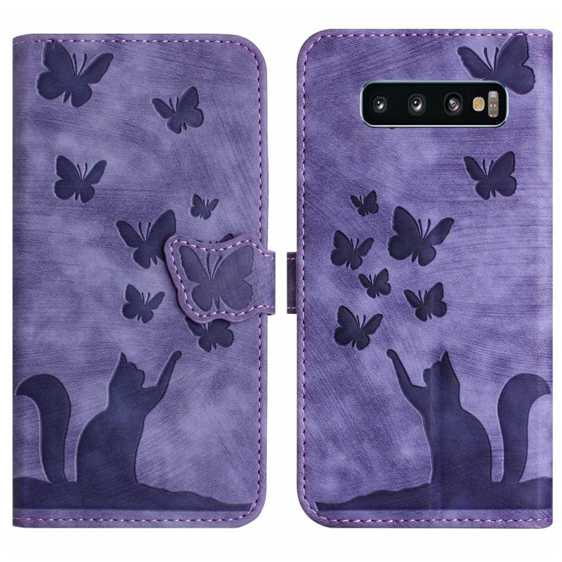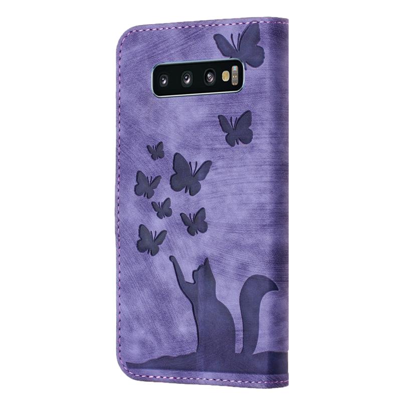 For Samsung Galaxy S10 Butterfly Cat Embossing Flip Leather Phone Case(Purple)