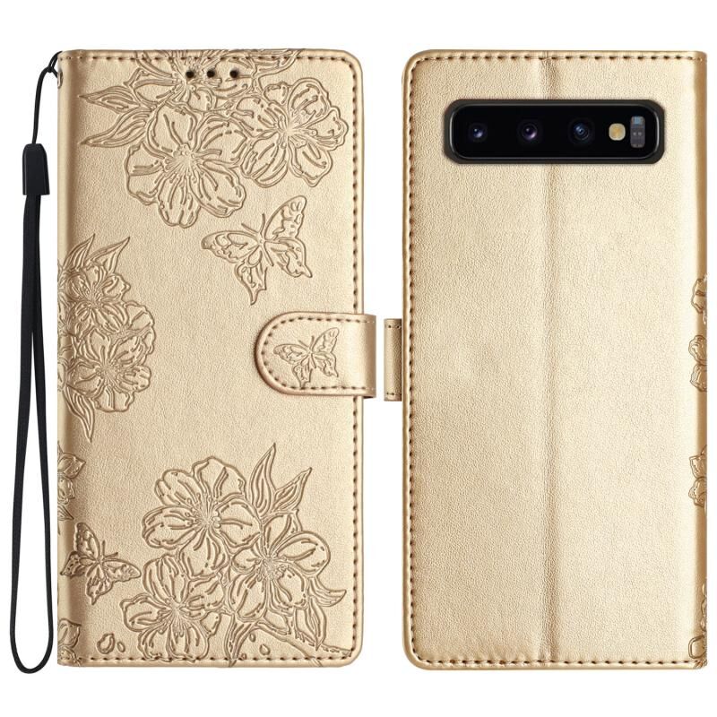 Θήκη τηλεφώνου Samsung Galaxy S10 Cherry Blossom Butterfly με ανάγλυφο PU υλικό αίσθησης δέρματος (Κόκκινο)