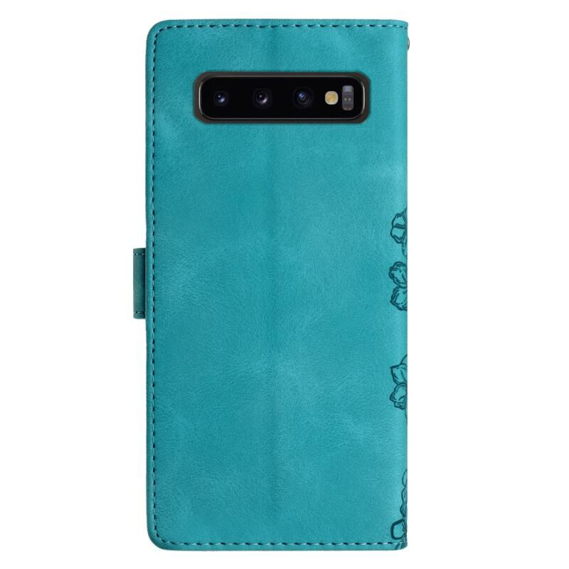 Θήκη τηλεφώνου Samsung Galaxy S10 Cherry Blossom Butterfly με ανάγλυφο PU υλικό αίσθησης δέρματος (πράσινο)