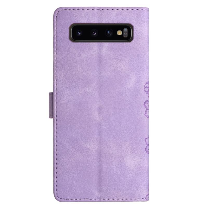 Θήκη τηλεφώνου Samsung Galaxy S10+ Cherry Blossom Butterfly με ανάγλυφη υφή PU (Κόκκινη)