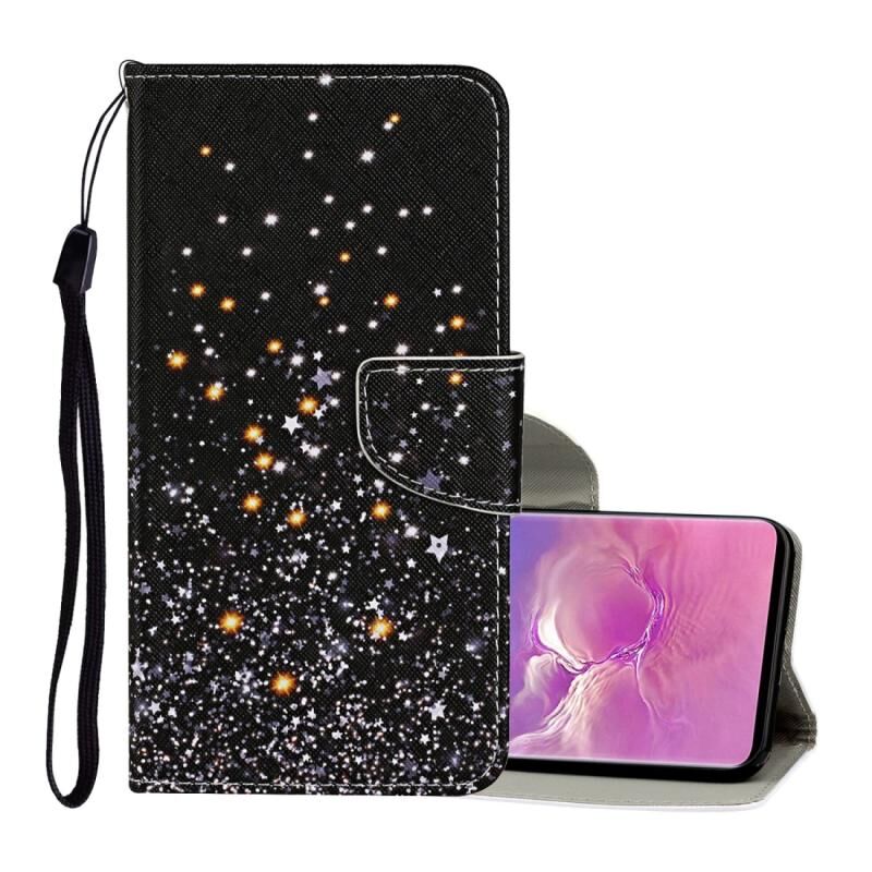 Θήκη δέρματος οριζόντιας αναδίπλωσης με σχέδιο έγχρωμης ζωγραφικής για Samsung Galaxy S10+ με βάση στήριξης & υποδοχές καρτών & πορτοφόλι & κορδόνι (Μαύρη Γάτα)