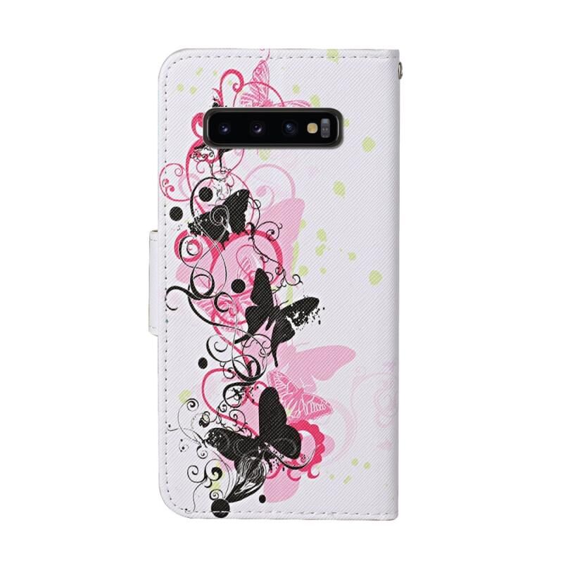 Θήκη δέρματος οριζόντιας αναδίπλωσης με σχέδιο πολύχρωμης ζωγραφικής για Samsung Galaxy S10+ με βάση στήριξης & υποδοχές καρτών & πορτοφόλι & κορδόνι (Τέσσερα Πεταλούδες)