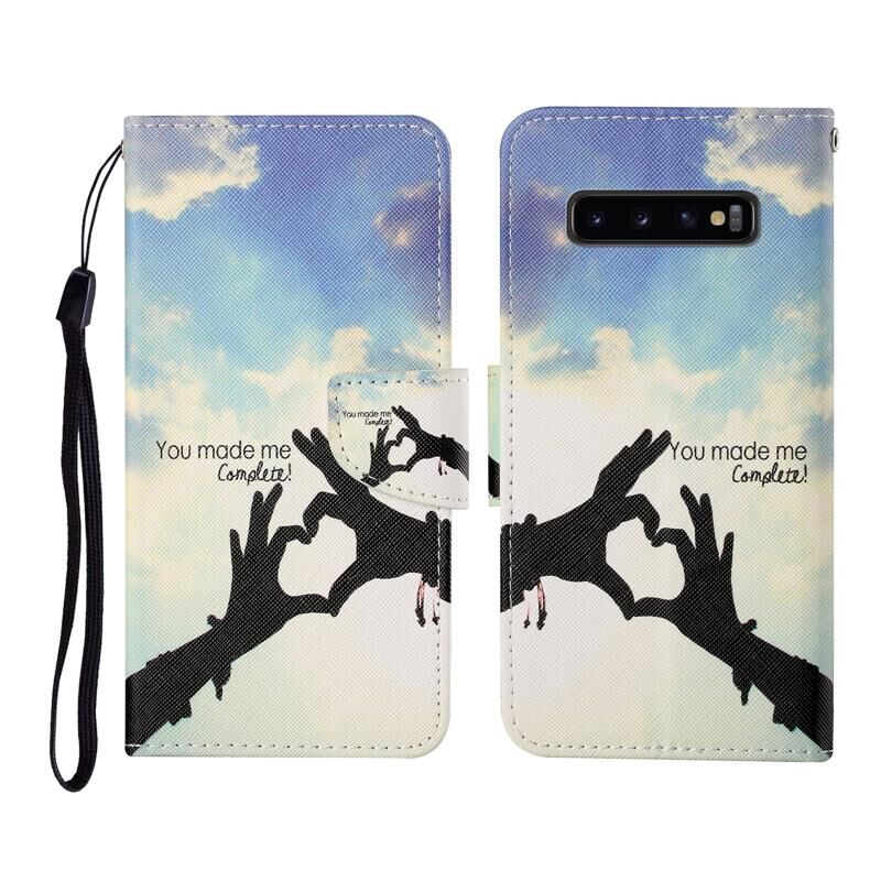 Θήκη δέρματος οριζόντιας αναδίπλωσης με σχέδιο πολύχρωμης ζωγραφικής για Samsung Galaxy S10+ με βάση στήριξης & υποδοχές καρτών & πορτοφόλι & κορδόνι (Κόκκινο)