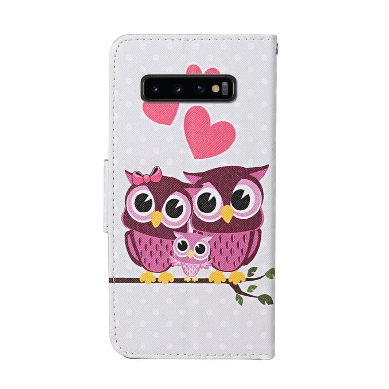 Θήκη δέρματος οριζόντιας αναδίπλωσης με σχέδιο πολύχρωμης ζωγραφικής για Samsung Galaxy S10+ με βάση στήριξης & υποδοχές καρτών & πορτοφόλι & κορδόνι (Οικογένεια Κουκουβάγιας)