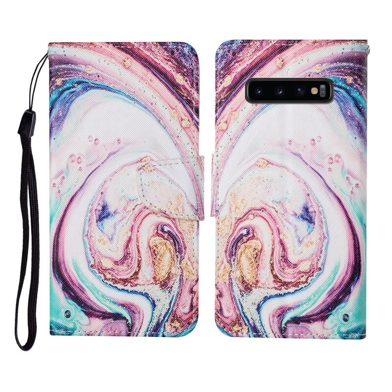 Θήκη δέρματος οριζόντιας αναδίπλωσης με σχέδιο πολύχρωμης ζωγραφικής για Samsung Galaxy S10 με βάση στήριξης & υποδοχές καρτών & πορτοφόλι & κορδόνι (Μαρμάρινο Στροβιλισμός)