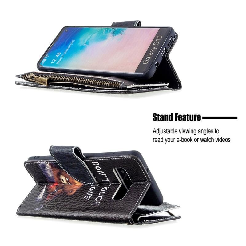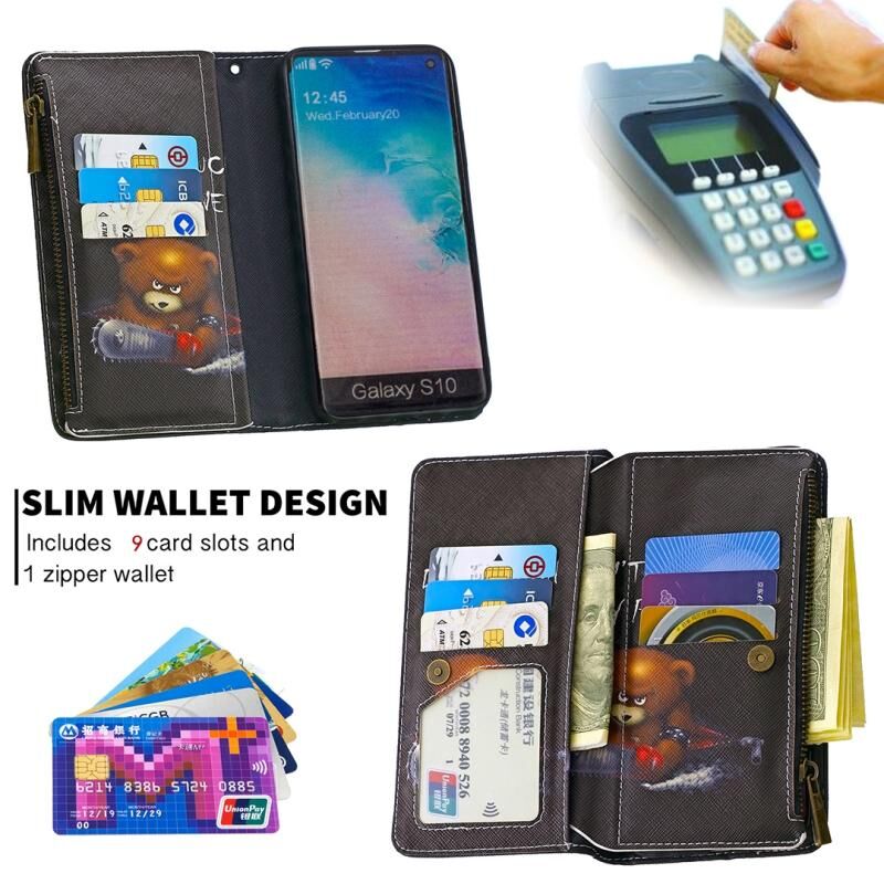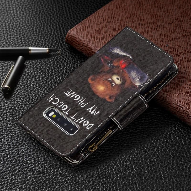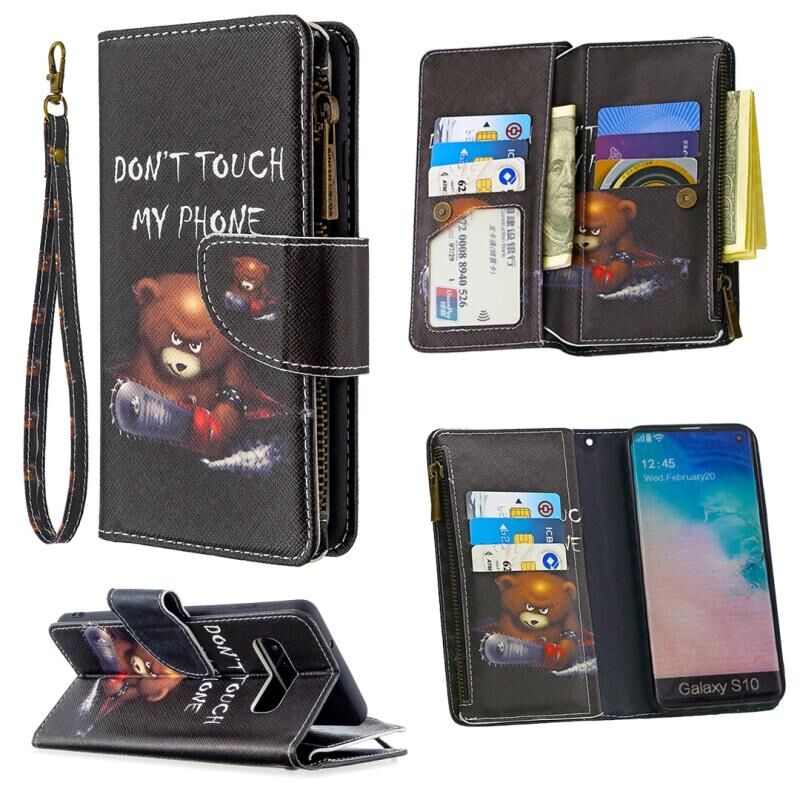 Θήκη Samsung Galaxy S10 Δερμάτινη Οριζόντια με Φερμουάρ, Πολύχρωμο Σχέδιο, με Θήκη & Θήκες Καρτών & Πορτοφόλι (Αρκούδα)