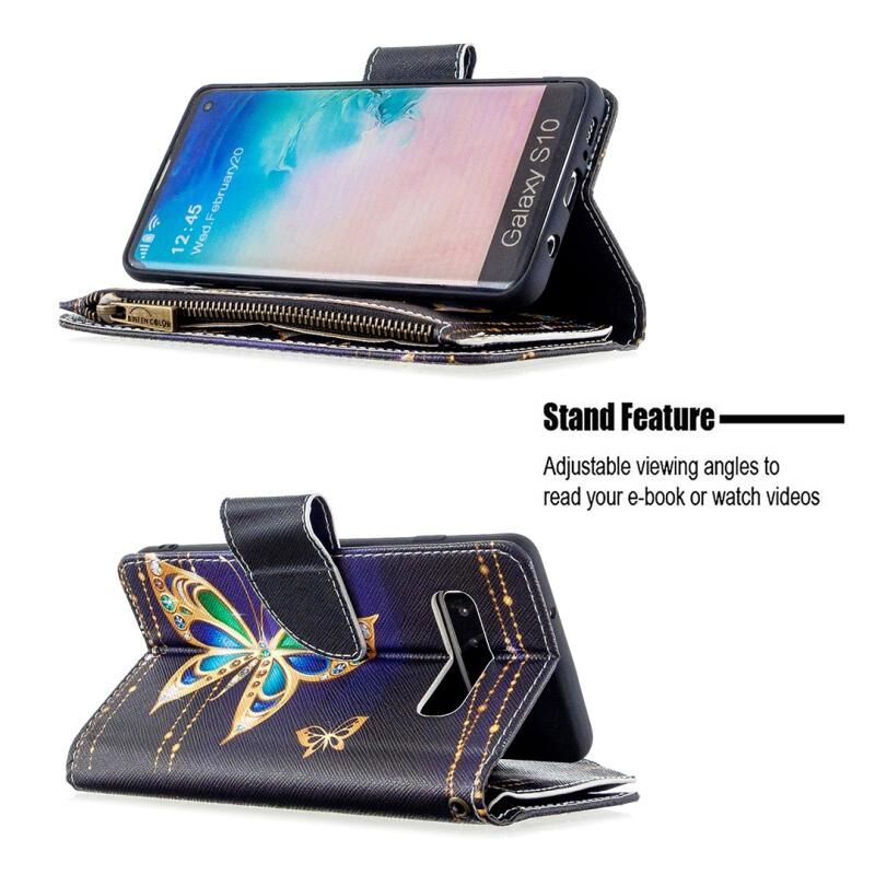 Θήκη Samsung Galaxy S10 Δερμάτινη Οριζόντια με Φερμουάρ, Σχέδιο Ζωγραφικής σε Χρώματα, με Θήκη & Θήκες Καρτών & Πορτοφόλι (Μεγάλη Πεταλούδα)
