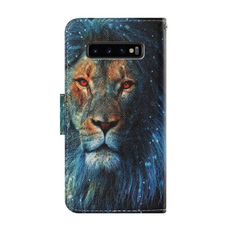 Θήκη Samsung Galaxy S10 με σχέδιο πολύχρωμης ζωγραφικής, οριζόντια αναδιπλούμενη από δερματίνη PU με βάση στήριξης & θήκες καρτών & πορτοφόλι & κορδόνι (Λιοντάρι)