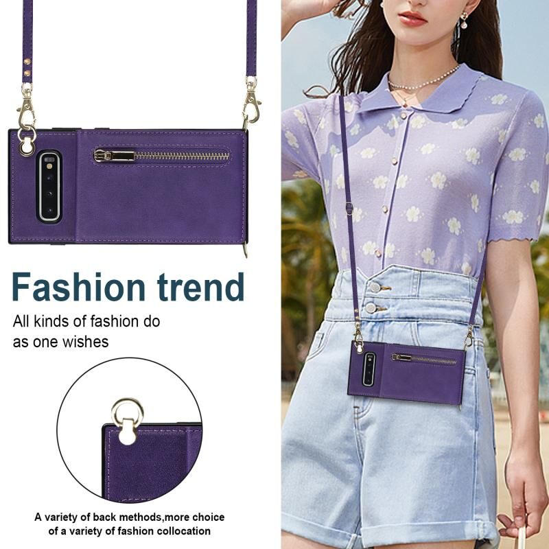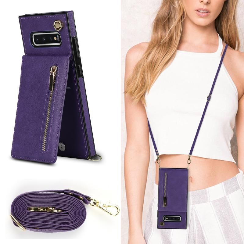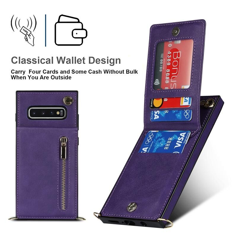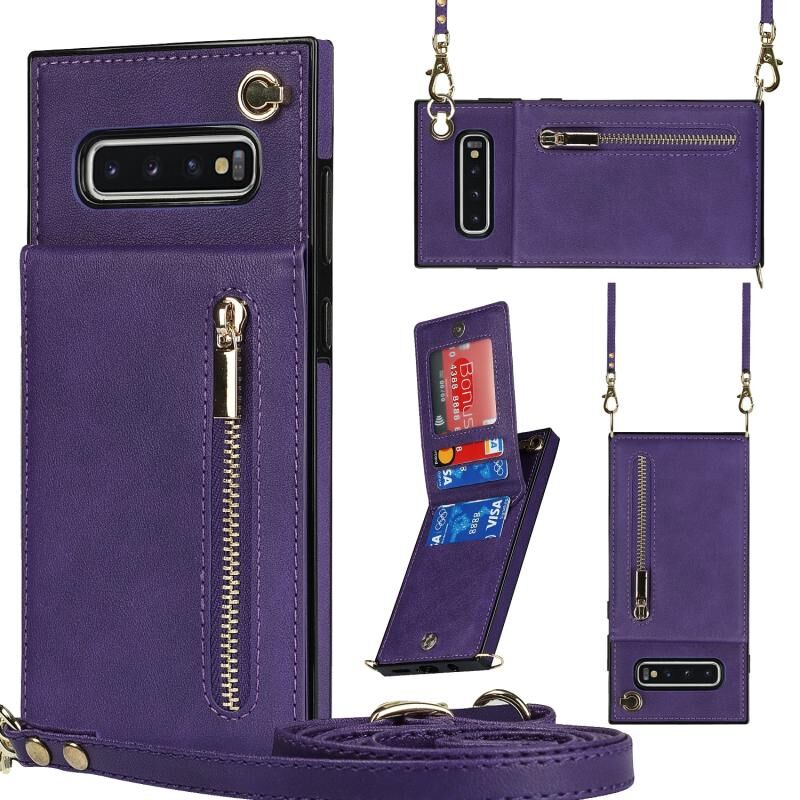 Για Samsung Galaxy S10 Cross-body φερμουάρ τετράγωνο TPU + PU πίσω κάλυμμα θήκη με θήκη & υποδοχές για κάρτες & πορτοφόλι & λουράκι (μωβ)