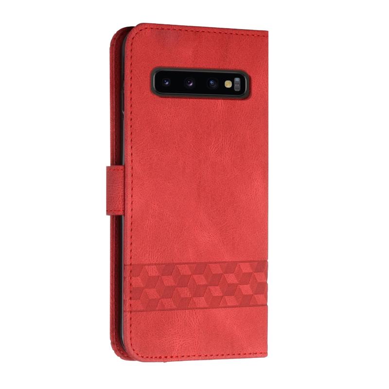 Θήκη τηλεφώνου Samsung Galaxy S10+ Cubic Skin Feel Flip από δέρμα (Κόκκινο)