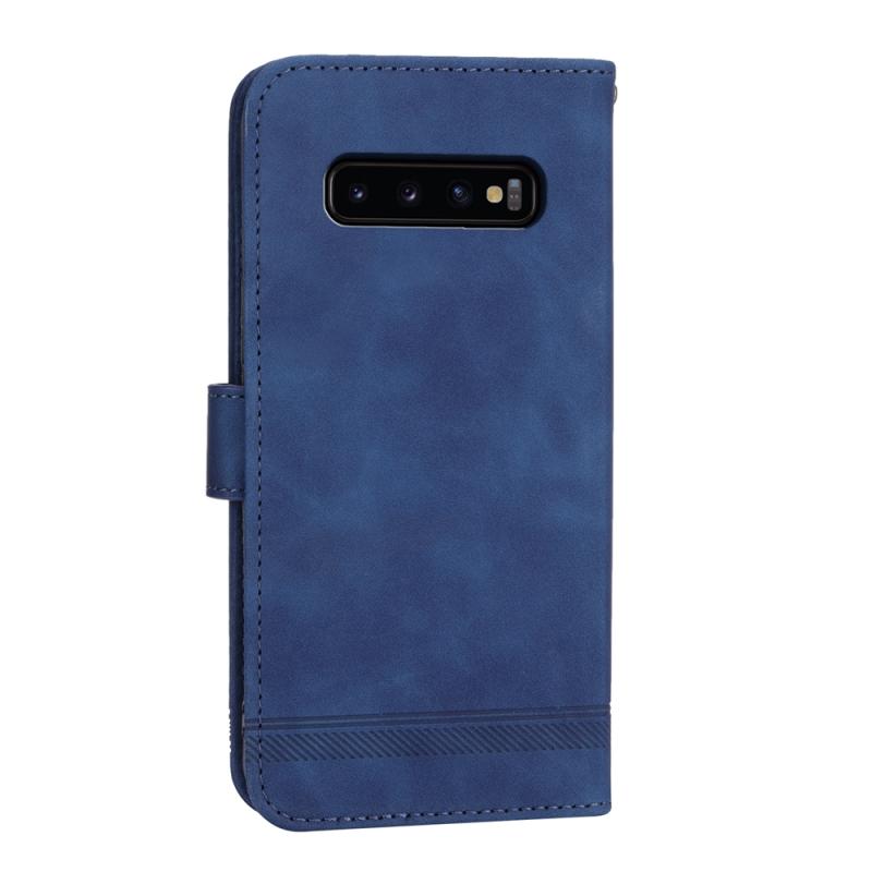 For Samsung Galaxy S10+ Dierfeng Dream Line Leather Phone Case(Blue)