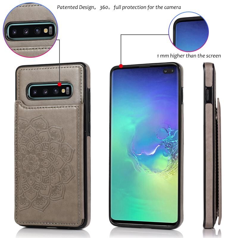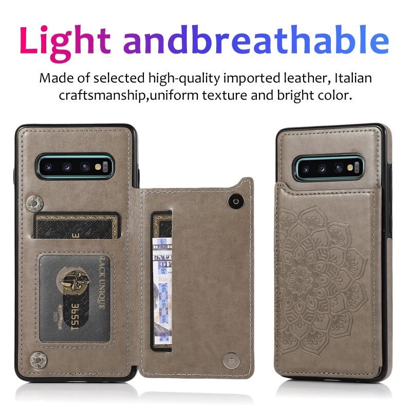 Θήκη προστασίας για Samsung Galaxy S10 με διπλή αγκράφα, μοτίβο Mandala από PU+TPU με υποδοχές καρτών & βάση στήριξης & κορνίζα φωτογραφιών (Μωβ)