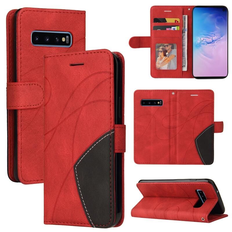Για Samsung Galaxy S10 Διπλό χρώμα Splicing οριζόντια Flip PU δέρμα υπόθεση με θήκη & υποδοχές για κάρτες & πορτοφόλι (κόκκινο)