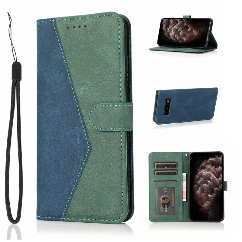 Για Samsung Galaxy S10 Διπλό χρώμα ραφή δερμάτινη θήκη τηλεφώνου (μπλε πράσινο)