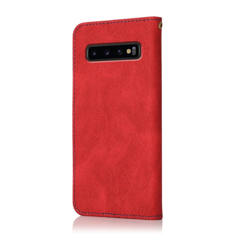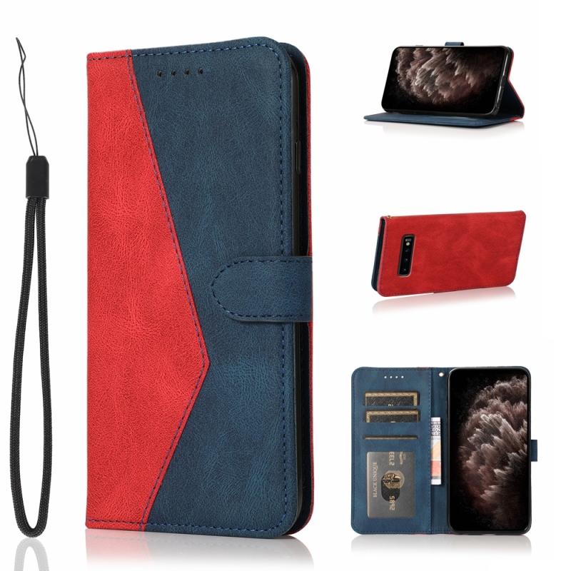 Θήκη τηλεφώνου δερμάτινη με διπλή ραφή για Samsung Galaxy S10 (Κόκκινο Μπλε)