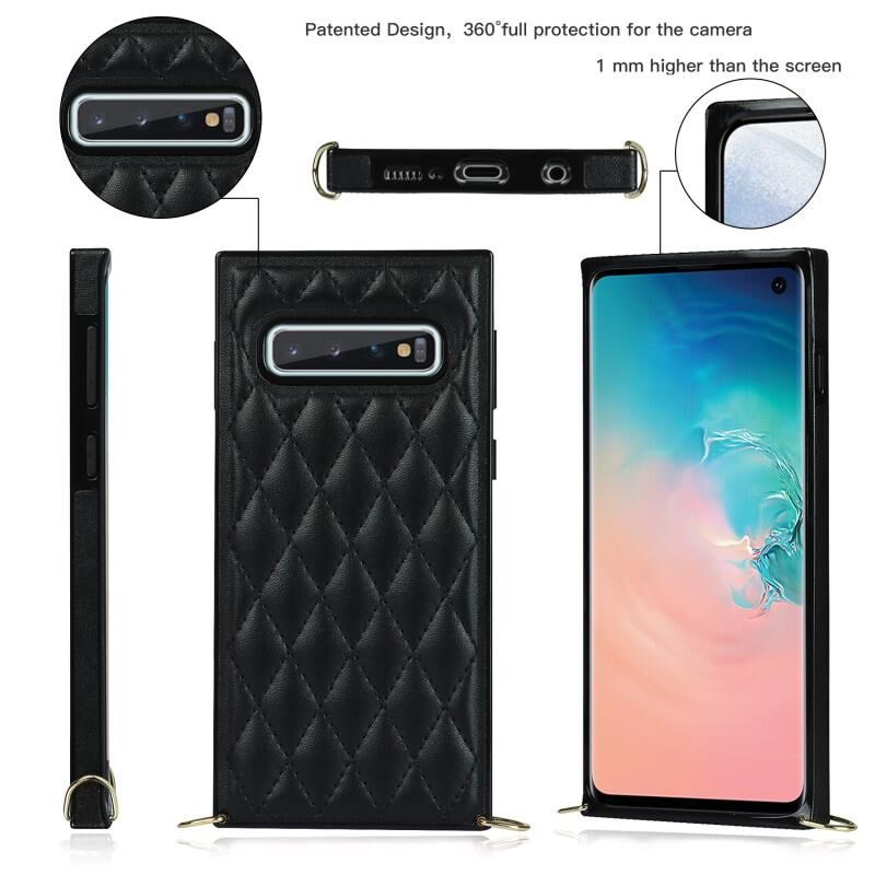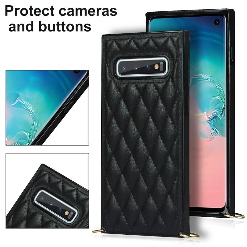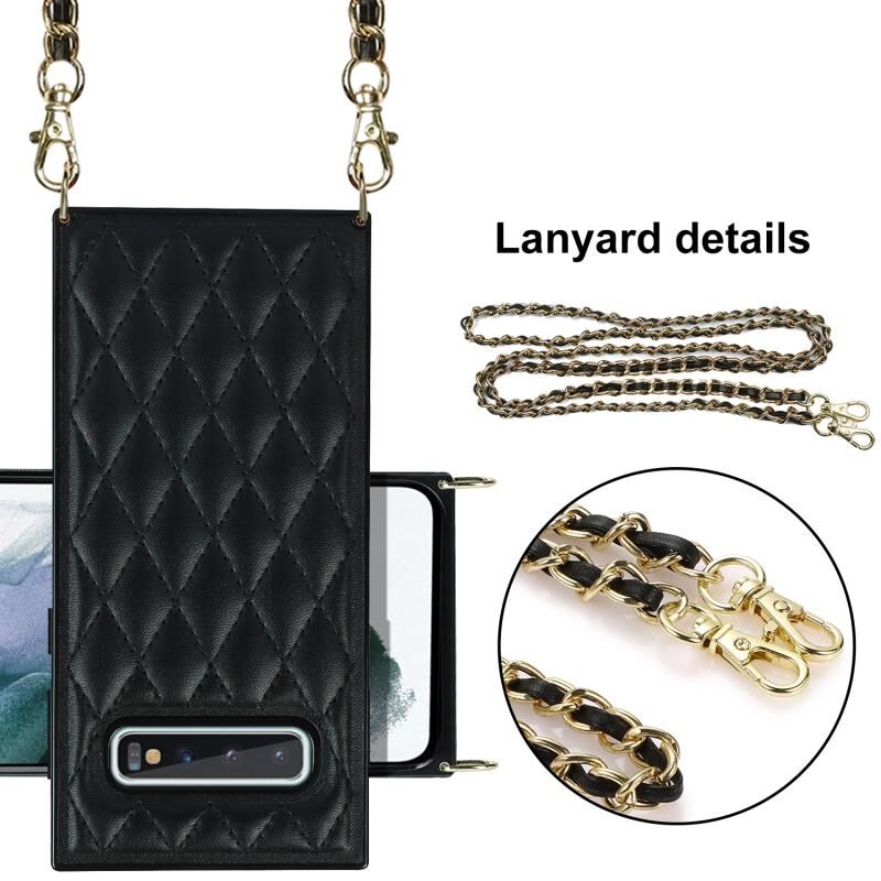 Για Samsung Galaxy S10 Κομψό ρομβοειδές μοτίβο μικροϊνών δέρμα +TPU Shockproof υπόθεση με αλυσίδα λουράκι σταυρού (Μαύρο)