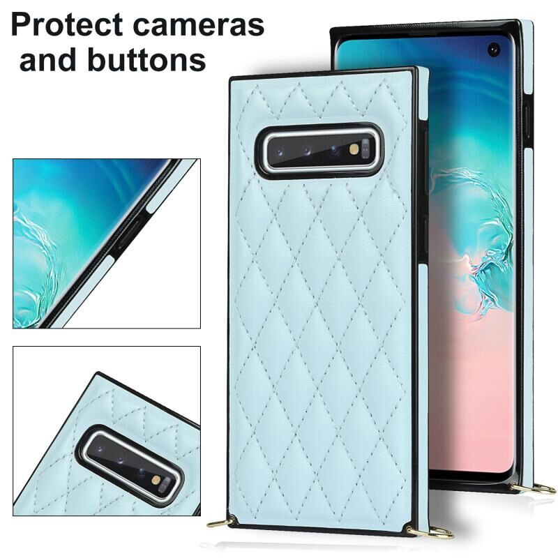 Για Samsung Galaxy S10+ Κομψό ρομβοειδές μοτίβο μικροϊνών δέρμα +TPU Shockproof υπόθεση με αλυσίδα λουράκι σταυρού (μπλε)