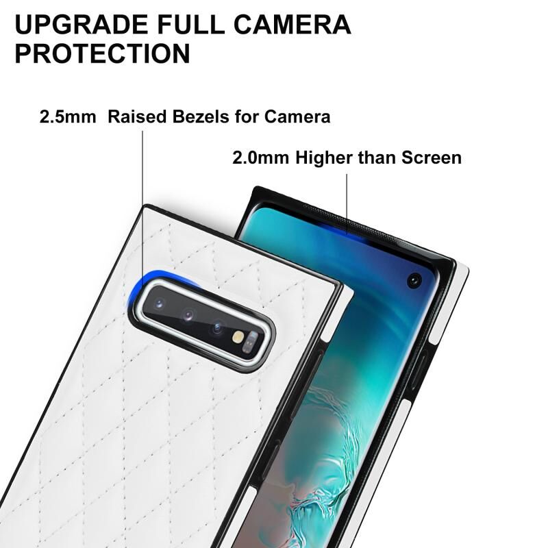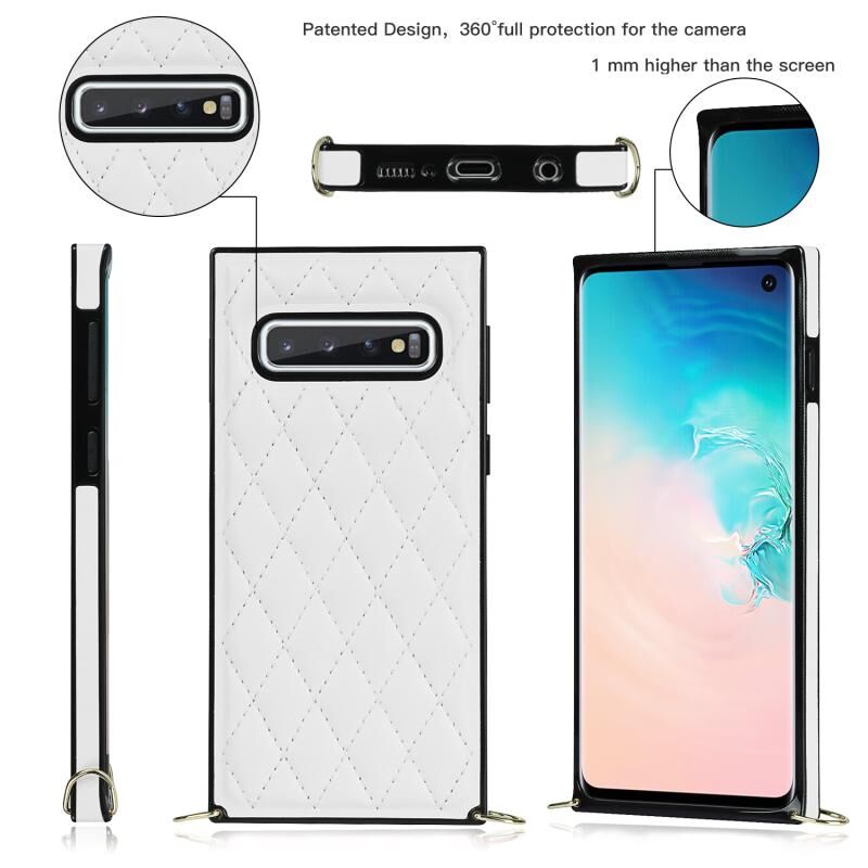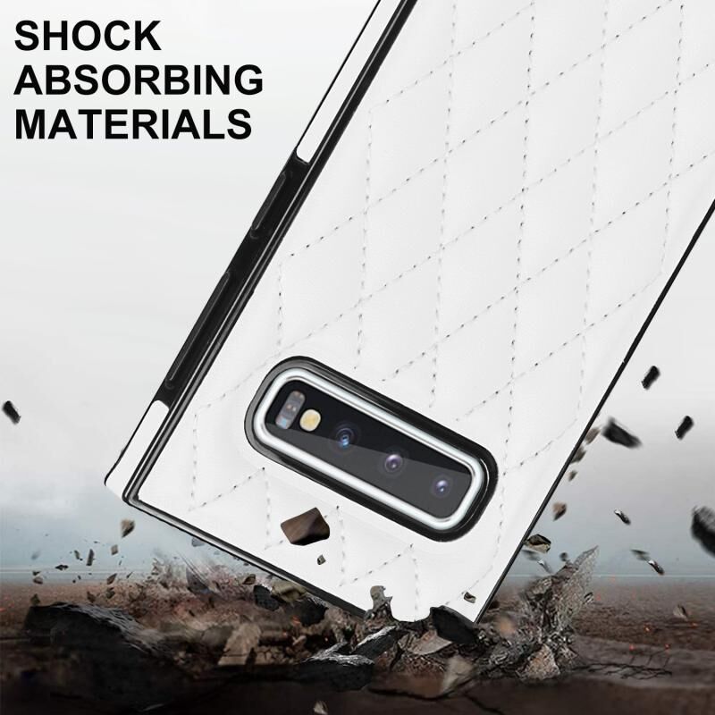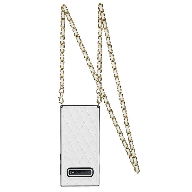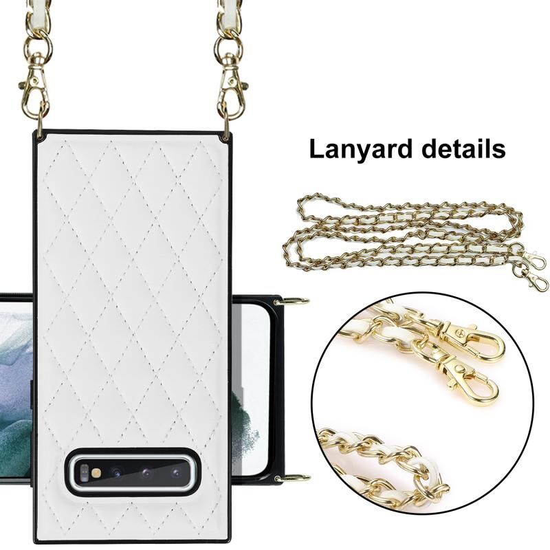 Για Samsung Galaxy S10+ Κομψό ρομβοειδές μοτίβο μικροϊνών δέρμα +TPU Shockproof υπόθεση με αλυσίδα λουράκι σταυρού (λευκό)