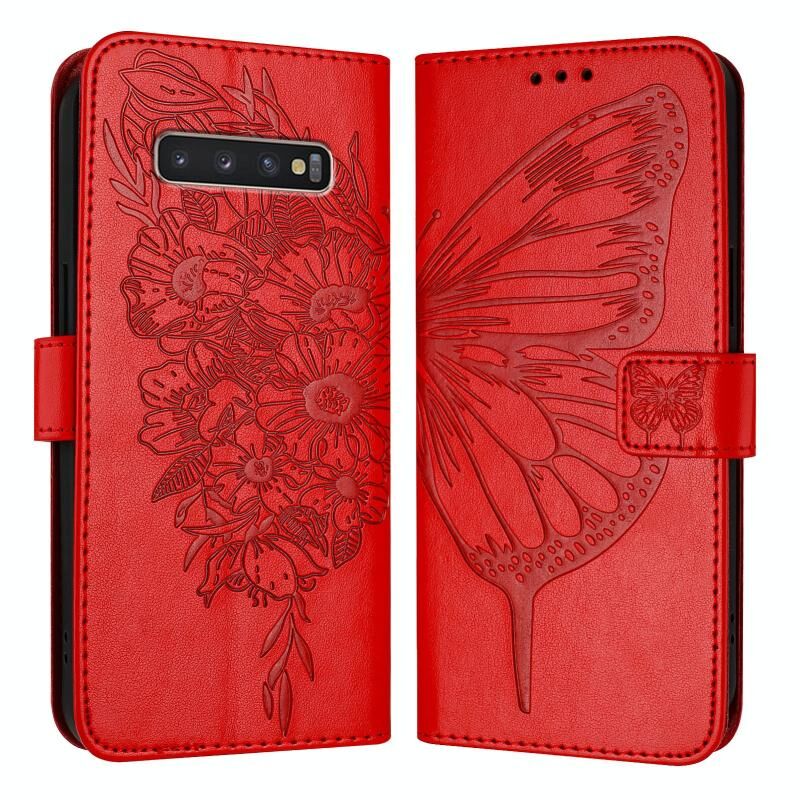 Για Samsung Galaxy S10+ ανάγλυφη θήκη τηλεφώνου με δέρμα πεταλούδας (κόκκινο)
