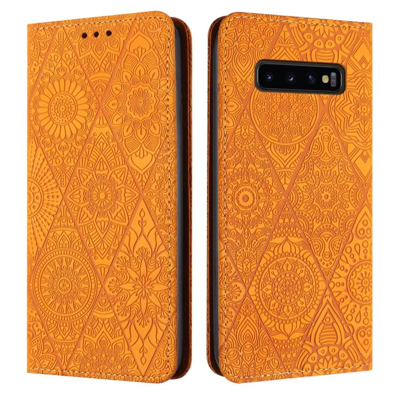 Θήκη τηλεφώνου Samsung Galaxy S10+ από δέρμα με έθνικ ανάγλυφο και απορρόφηση (Κίτρινο)