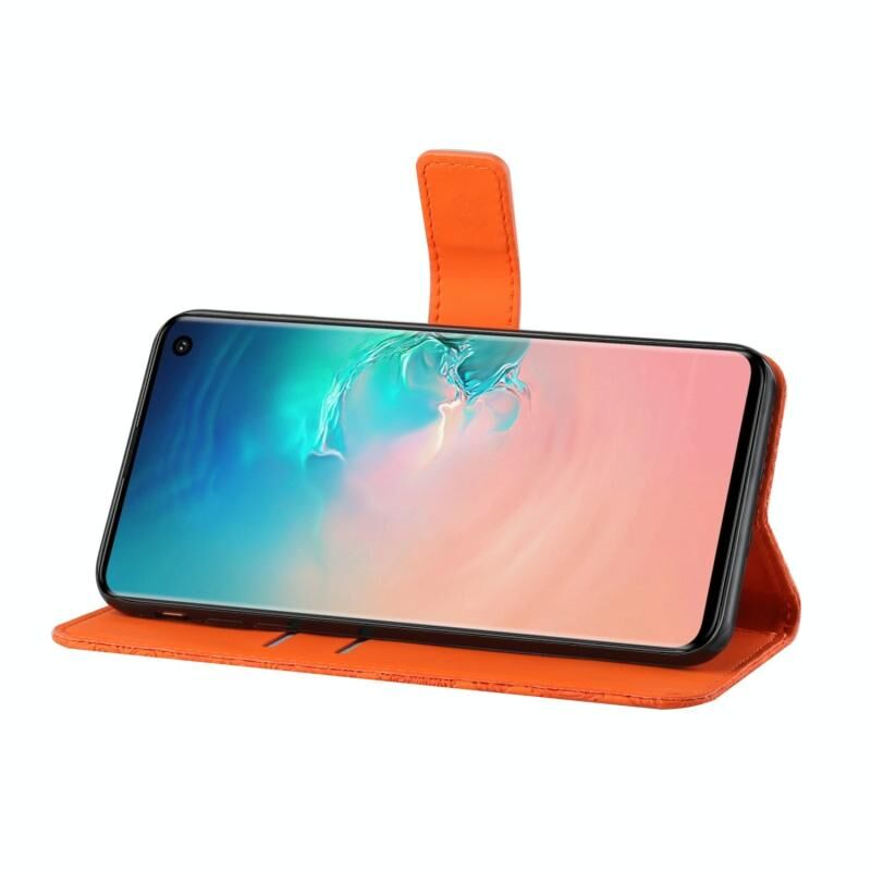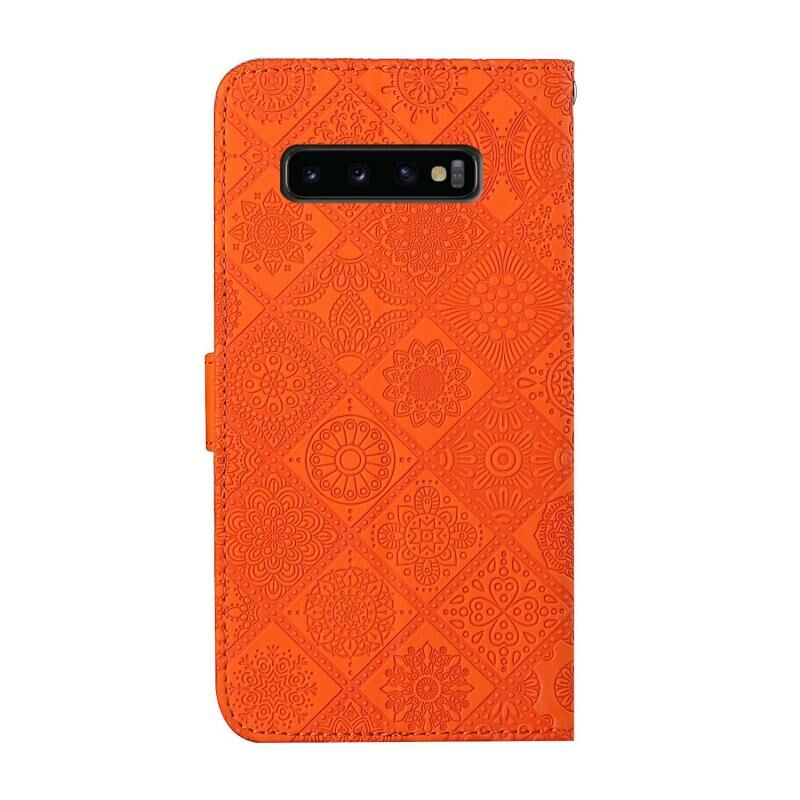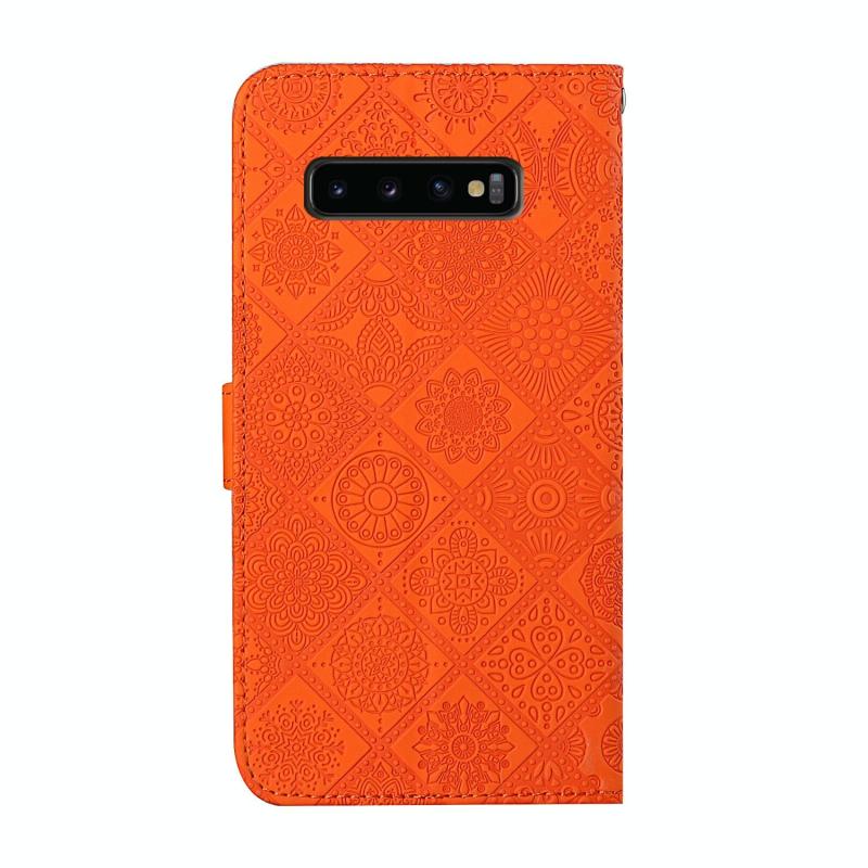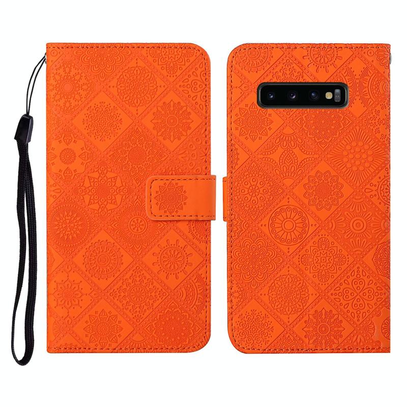 For Samsung Galaxy S10+ Ethnic Style Embossed Pattern Horizontal Flip Leather Case with Holder & Card Slots & Wallet & Lanyard(Orange)