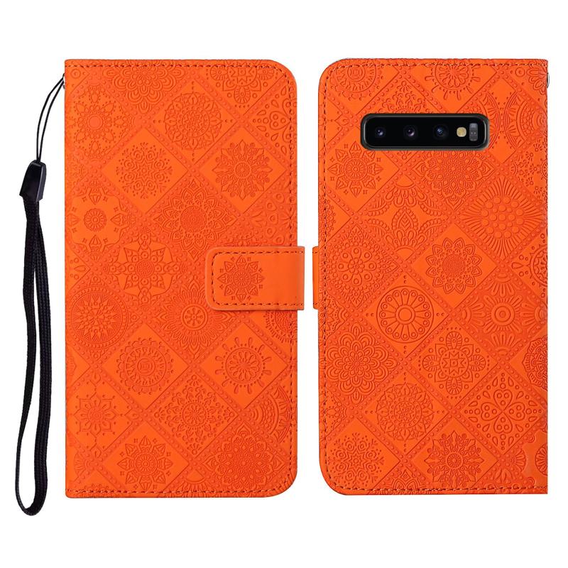 For Samsung Galaxy S10 Ethnic Style Embossed Pattern Horizontal Flip Leather Case with Holder & Card Slots & Wallet & Lanyard(Orange)