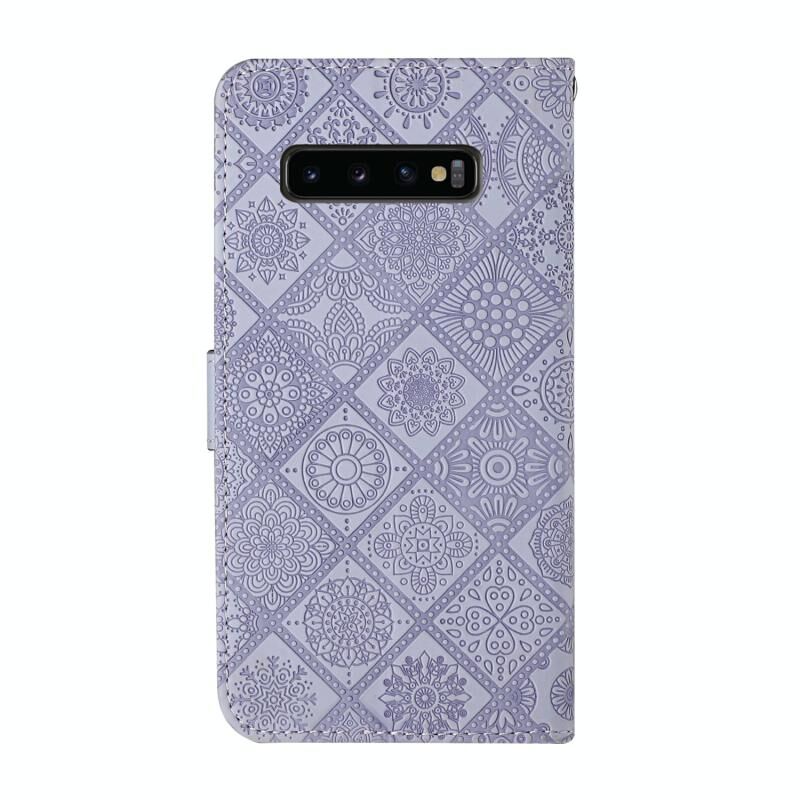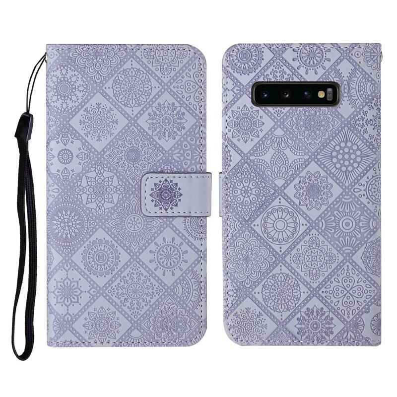 For Samsung Galaxy S10 Ethnic Style Embossed Pattern Horizontal Flip Leather Case with Holder & Card Slots & Wallet & Lanyard(Purple)