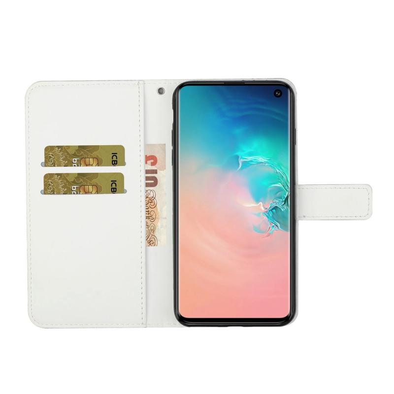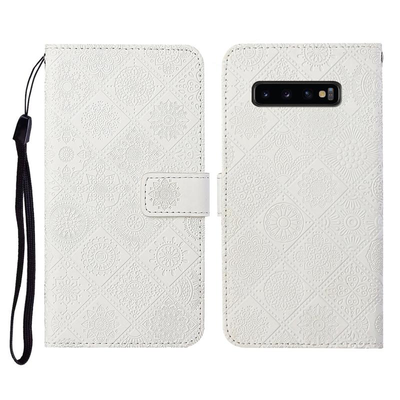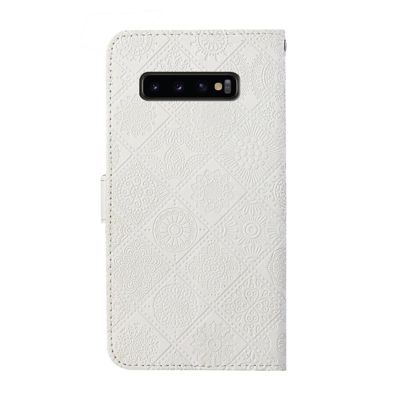 Θήκη Samsung Galaxy S10+ Οριζόντια Δερμάτινη με Εθνοτικό Σχέδιο, ανάγλυφο, με Θήκη, Θήκες Καρτών, Πορτοφόλι & Λουρί (Λευκό)