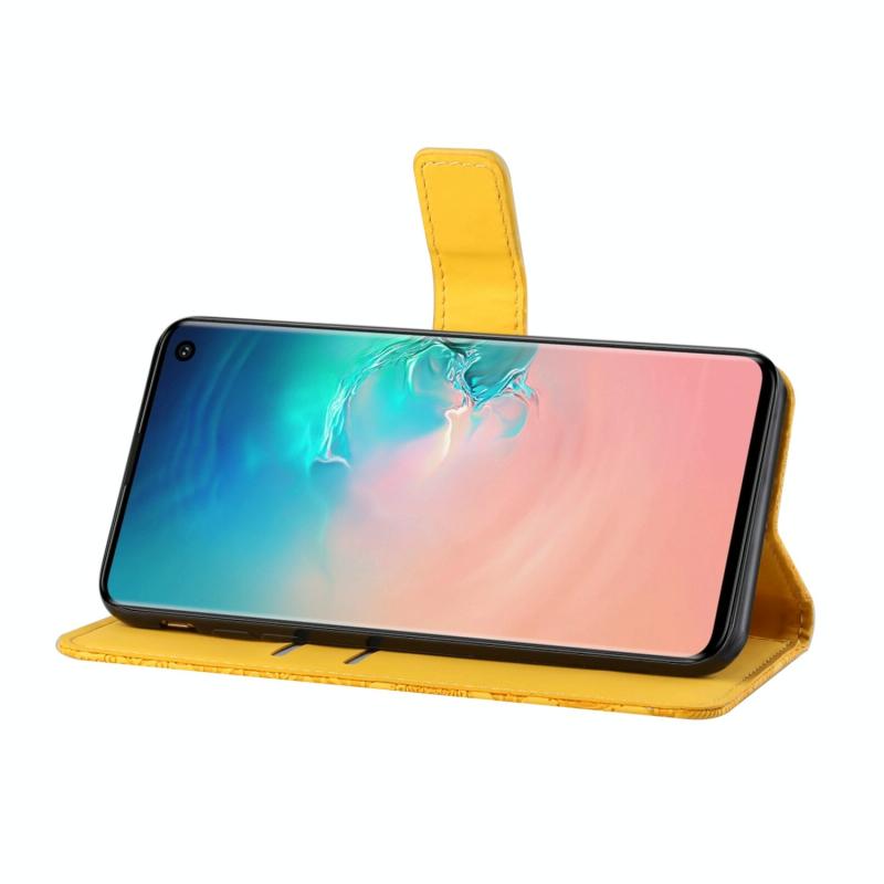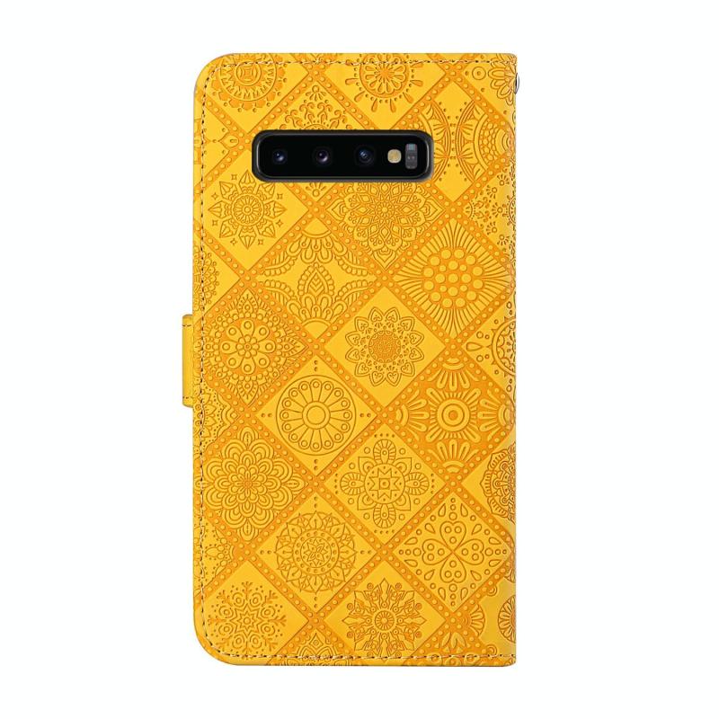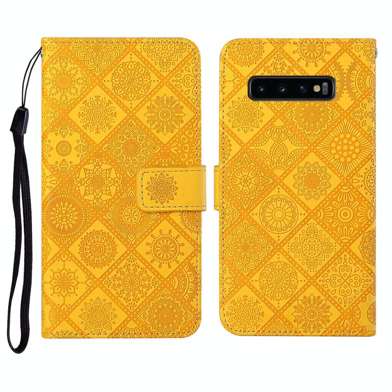 For Samsung Galaxy S10+ Ethnic Style Embossed Pattern Horizontal Flip Leather Case with Holder & Card Slots & Wallet & Lanyard(Yellow)