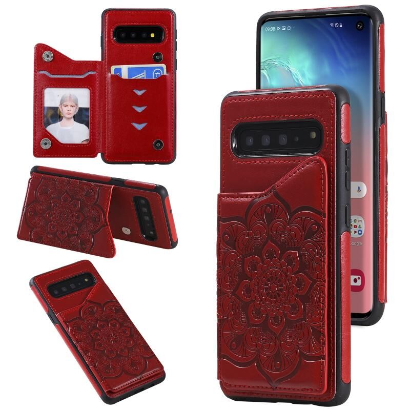 Για Samsung Galaxy S10 Λουλούδι ανάγλυφο μοτίβο Shockproof προστατευτική θήκη με θήκη & υποδοχές για κάρτες & πλαίσιο φωτογραφιών (κόκκινο)
