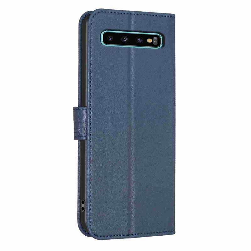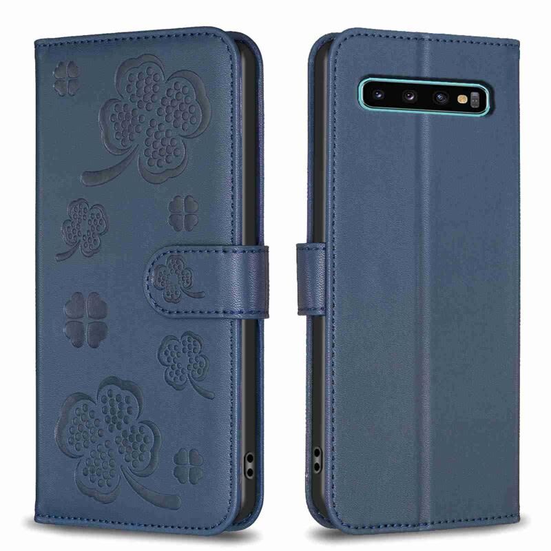 For Samsung Galaxy S10+ Four-leaf Embossed Leather Phone Case(Blue)