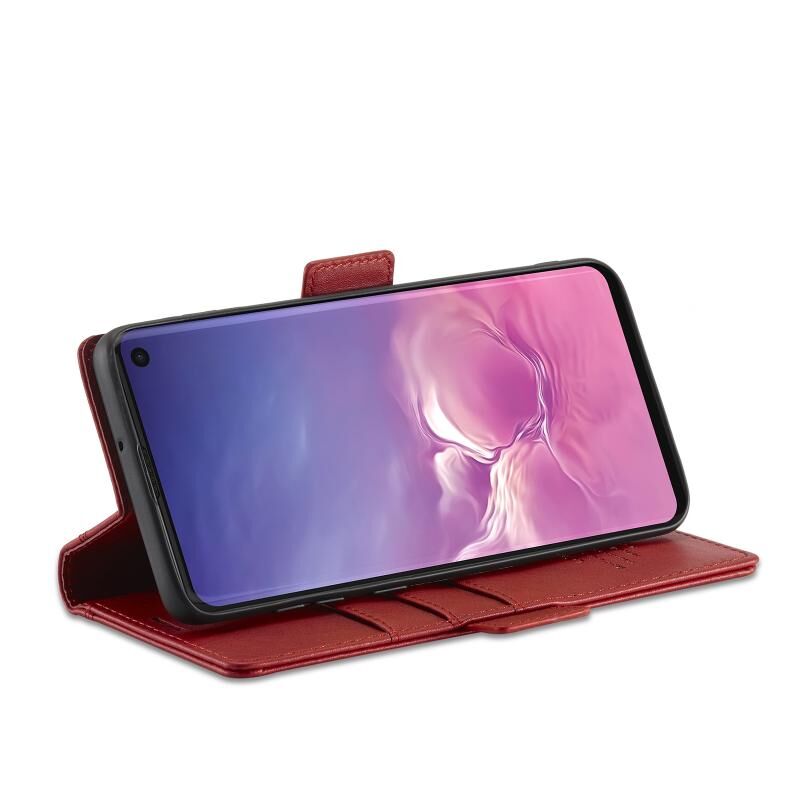 Για Samsung Galaxy S10 LC.IMEEKE Μαγνητική Αγκράφα Δερμάτινη Θήκη Flip PU + TPU Οριζόντια με Στήριξη & Θήκες Καρτών & Πορτοφόλι (Μαύρο) (Κόκκινο)