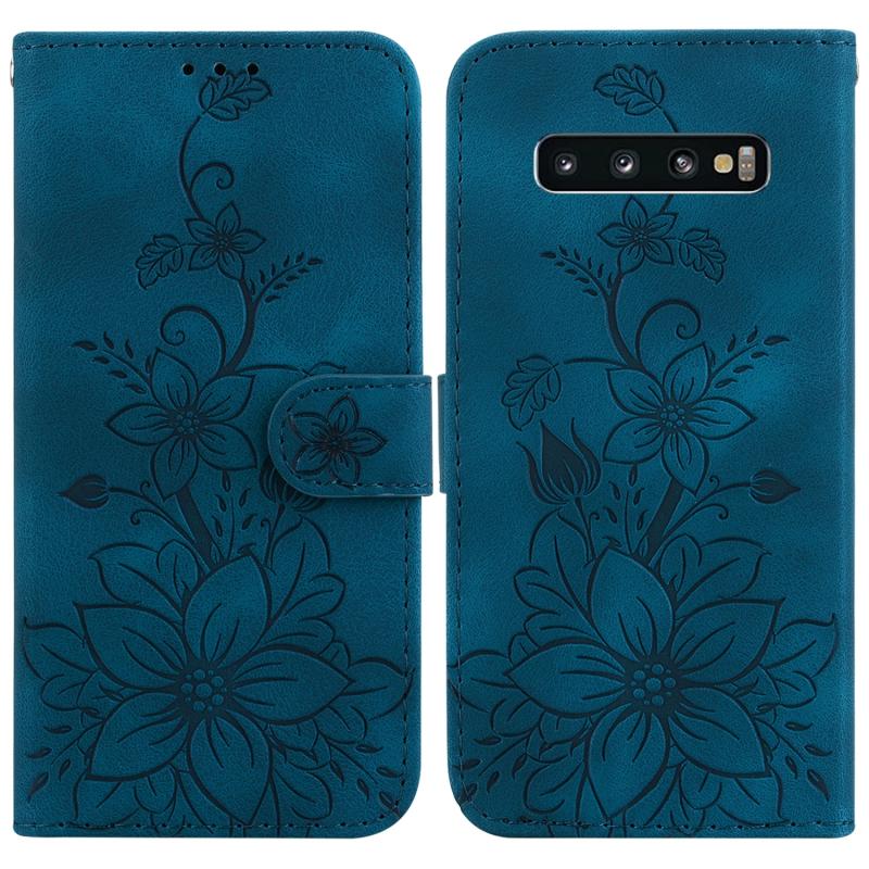 For Samsung Galaxy S10 Lily Embossed Leather Phone Case(Dark Blue)