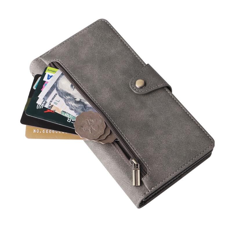 Για Samsung Galaxy S10 Lite 2020 Rivet πόρπη 9 κάρτες τρεις φορές δερμάτινη θήκη τηλεφώνου (γκρι)