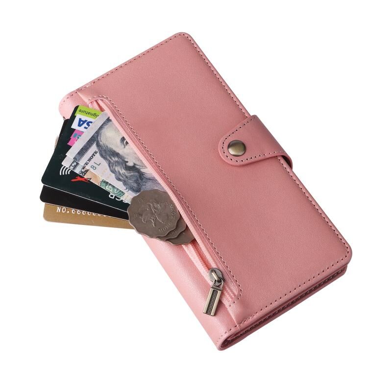 Για Samsung Galaxy S10 Lite 2020 Rivet πόρπη 9 κάρτες τρεις φορές δερμάτινη θήκη τηλεφώνου (ροζ χρυσό)